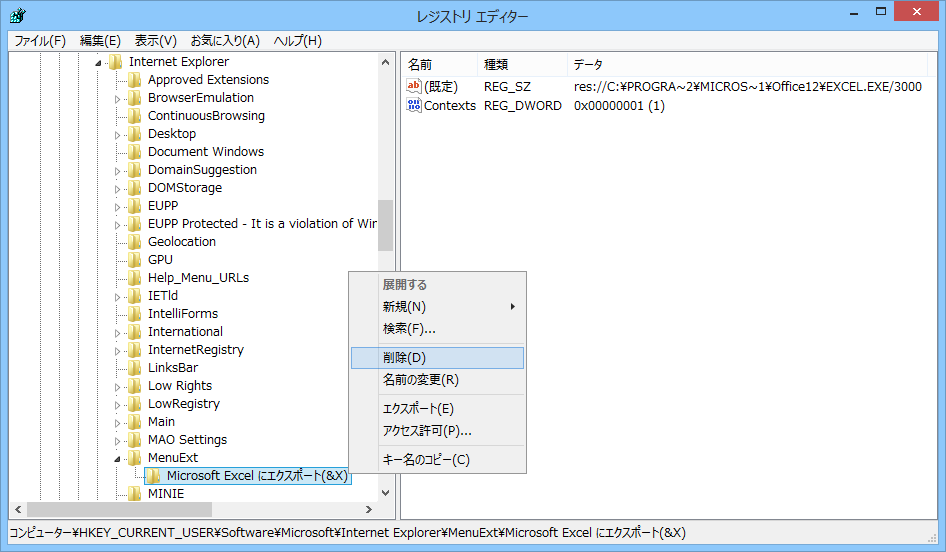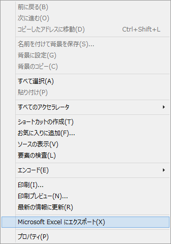 Office2007をインストールすると、InternetExplorer11で「Microsoft Excel にエクスポート」というメニューが表示されます。
