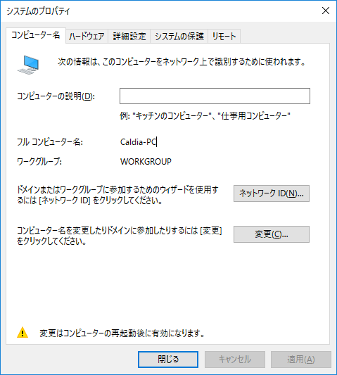 パソコンの初期状態によってコンピューター名が標準で入力されている場合、わかりやすいものに変更します。