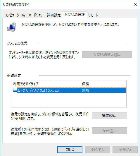 復元機能は前の状態を完全復元してくれるものではなく、非常に曖昧な構成でWindowsを復元するため、使わないと割り切った方が賢明です。
